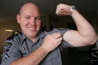NEW YORK GIANTS LOGO :D. I thought ..how cool is that, if I have the same option, I decided to honor my son who passed away suddenly March 8th 2010. He worked with the Marion County Sheriffs Dept. I have enclosed the photo I want on my new leg :D This is one of my favorites. He is in a uniform for a job he loved, and yet shows his playful side. Shane loved life.